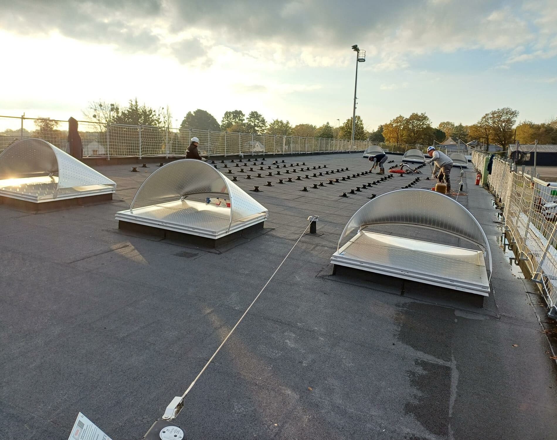 - Installation de lanterneaux d’éclairage naturel, équipés de voiles dôme d’ombrage pour améliorer le confort intérieur.